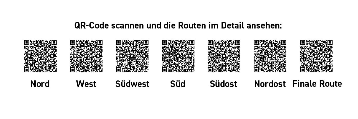 Für einen ersten Überblick zu den möglichen Routen einfach den jeweiliegen QR-Code scannen!